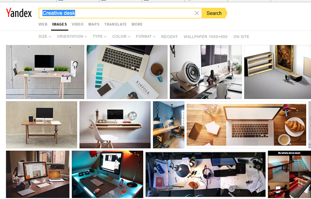 广告设计的同学平时都会用到图片搜索,寻找图片素材,国内的图片素材可能很难满足我们的设计需求,因此我们除了使用图库网站之外,也可以考虑使用一些外文的搜索引擎来检索图片。 以前国内还能访问Google的时候,许多设计师很喜欢使用Google图片搜索来搜索图片,可以搜索到国外一些优质的图片网站上的图片素材,现在国内无法正常访问Google图片搜索了,我们可以还可以使用一些其他的搜索引擎的图片搜索来搜索海外的图片的。昨天我们在yandex提供了哪些服务一文中介绍到了来自俄罗斯的搜索引擎yandex也是可以提供图片搜索服务的,并且yandex也有英文版的网站,在国内也是可以访问的,因此我们可以使用yandex图片搜索来搜索图片。 在使用yandex搜索图片的时候,我们可以在搜索框输入我们需要搜索内容的英文单词,这样便于检索到外文网站中,那些非常优秀的图片,例如,我们在检索框中输入:Creative desk(创意办公桌),那么我们就可以获得非常多的来自海外的图片素材了。