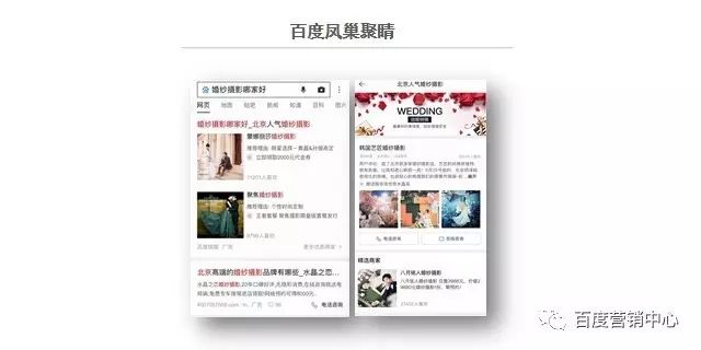 无论大小,有梗就好,富有特色的商户总是能聚集关注,吸睛无数。百度凤巢聚睛通过中间页突出商户卖点和“朋友式互助”的真实用户评价,帮助用户甄别,助商家圈粉。同时,消费者检索的婚纱摄影通用流量,在百度搜索结果页结构化展现商家聚合信息,促进用户决策。