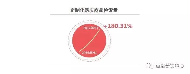 私人定制:爱的独裁经济 唯有专属的爱,才是人生最美的纪念。爱要专属,婚纱要定制,伴手礼要独树一帜,有关定制化婚庆商品的检索量,同比上涨180.31%。