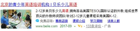 场景型图片:适合产品词使用。当网民搜索这类关键词词,脑中会对搜索的关键词做一个大致的联想。例如下图中的搜索“青少年英语培训”,网民的脑海中会首先想到“小孩子”“外教”,而不是一个机构LOGO。 关键词:青少年英语培训机构 优质图片:青少年围坐在外教身边