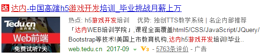 标语型图片:适合通用词投放。在网民搜索通用词时,往往并没有一个明确的选择对象,多半抱着“看一看”的心理,这时,一个醒目的大标语,将带给网民不一样的视觉冲击。 关键词:游戏开发