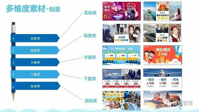 地域上则重点投放在目标用户聚集的一线及沿海城市,随着城市规模和地域性消费水平的降低,投放规模逐级下沉。 通过分析不同维度数据,不同时段携程用户的转化情况,不同地区、不同产品携程用户的活跃程度,不同资源位的点击率以及不同频道不同人群标签的消耗情况,搜狐有针对性的进行组合优化,形成多种组合拳,诸如一线城市+酒店素材+大图信息流,二三线城市+旅游景点+旅游人群等,效果卓著。 超强用户体验 最大限度唤醒沉默用户 通过“扶墙推荐!你绝不能错过的8大泰国美食!”、“教你如何用便宜价格订豪华酒店!”、“情侣住这酒店,想想都刺激!”等文章,引发用户兴趣和勾起欲望,展现对用户的利益承诺和用户的身份关联性,引起用户情感共鸣。 广告中加入实拍类、场景类、创意类和下载类素材,可以给用户很强的代入感与真实感,创意性更强更有趣,并对用户起引导作用,目的性更直接,使用户一目了然,避免造成不必要的点击。