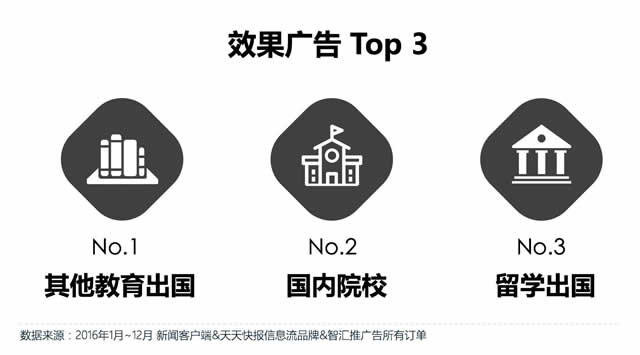 而在广告表现方面,品牌和效果广告有一个共同的特征:其他教育出国类表现突出,在两边的点击效果上均位列第一。