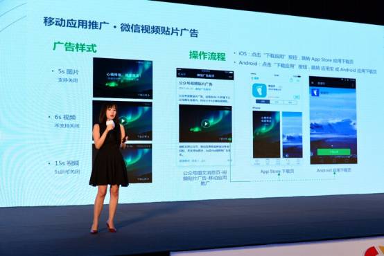 随后,腾讯社交广告高级产品市场经理孙邰炎子系统地介绍了如何利用腾讯社交广告丰富的广告样式,助力中小企业主实现获客目标。无论是本地推广、销售活动推广、移动应用推广,还是公众号推广的营销需求,都可以通过腾讯社交广告得到满足。以本地推广为例,微信朋友圈本地推广广告、QQ浏览器本地推广广告以及QQ附近的人广告,都能通过场景覆盖,帮助企业主精准触达本地受众,高效笼络客源。 ▼腾讯社交广告高级产品市场经理孙邰炎子