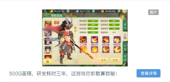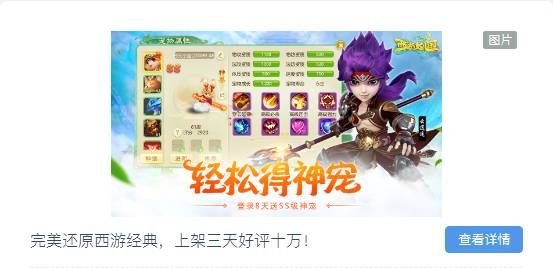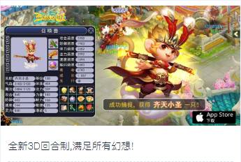 宠物属性图搭配带有筛选词汇(西游、回合制)的文案,图片画风筛选了偏好这类游戏的用户,图中宠物与App Store上主打的点吻合。此类创意成本偏低。