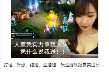 女色图搭配叙事类文案,虽然图中文案涉及到MOBA类游戏的梗,但用户天然对女色容忍度高且欲望浓烈。此类创意成本适中。