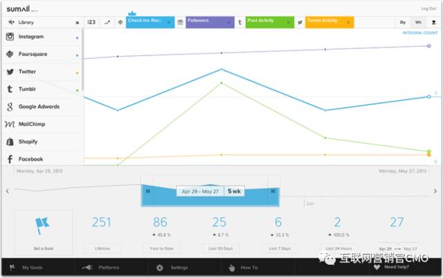 Simply Measured公司一直受到用户和科技评论网站的追捧,被认为是当今市场中最优秀的公司之一。该公司众多社交媒体分析工具中,以上仅仅是一个引用,包括一个令人印象深刻的免费社交媒体清单。涵盖了多种多样的社交网络,比如Twitter、 Facebook、Instagram、Google Plus 和 Vine,并监控流量来源。 ***该公司的程序包提供报告、社会品牌、受众分析及其他业务。在网站上找到定价信息并不容易,所以你必须通过实践演示才能找到所需业务的花费价格。 和其他社交平台不同,Simply Measured提供的众多工具和特权都无需花费你一分钱。 2 SumAll社交媒体分析公司