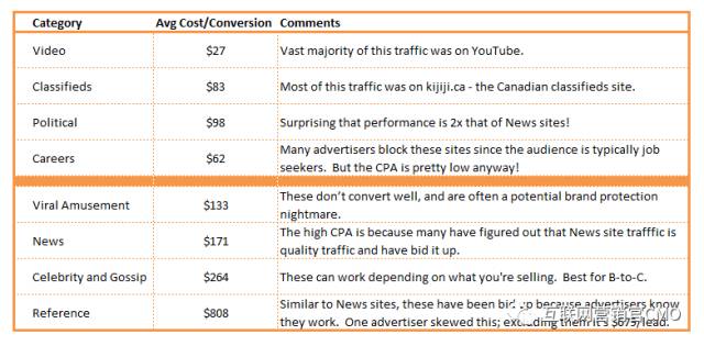 贡献者Ted Ives分享了一些数据,显示哪些网站类别效果最好。填补早期在线营销渠道部分的最佳方法之一是在Google的合作伙伴网站上进行广告宣传,即Google展示广告网络(GDN)。 从本质上讲,这些都是展示AdSense广告或DoubleClick广告的网站。(一些GDN广告资源实际上是“剩余”广告资源,没有人在DoubleClick上进行特定展示位置的购买) SEMCopilot是我们为PPC客户经理提供的AdWords管理软件,它从Beta测试人员和付费客户的AdWords帐户中收集数据;以下是对GDN展示位置的一些分析: 我们的数据如何组织? 为了快速分析展示位置,SEMCopilot的“展示位置分析”功能会自动将展示位置分为40多个类别。 Google有自己的类别供我们用来排除目的。我们假设大多数客户已经阻止色情或成人网站等。分类是为了了解广告投放位置,进行品牌保护和绩效分析。根据用户数据,我们第一季度分类网站占Google展示广告网络展示次数的96%。 为什么要分类网站? 由于Google展示广告网络上的网站数量,对于大多数AdWords客户经理来说,简单查看展示位置报告是非常无效的。最好是,他们通常看到前几百...然后,点击次数下降到一到两个时,他们就停止进一步观察。这是一个很长的网站尾巴。因此,将展示位置报告组织成类别会使它收集可行见解时变得更容易。 以下是来自用户的实际报价,他们检查了我们的展示位置数据报告 - 这说明了有人经常发现的惊喜: “嗨,我的广告正在约会网站上运行!” “这些政治网站是什么?” “哇,为什么我的广告会在eBay上运行?” “我的广告在这些外语网站上做什么?” “哇,[类别]真的获得了很多转换。 也许我应该针对这些网站,做一个展示位置的广告宣传,并参与竞标。 我们检查的类别? 大多数营销人员可以直观地查看类别并快速决定某些不合适的内容。例如,如果您销售建筑设计服务,“漫画和动漫”就不太可能是一个高绩效的类别。 也就是说,对于再营销广告,您正在关注周围的观众,所以谁会知道呢? 也许他们喜欢这些网站!总是按类别分析转化和成本/转化才是关键; 那么你就可以了解你的广告费用放在哪些位置才是最适合你的了: SEMCopilot的Placement Insights分类 ![]() 那么,“假消息”和“极端主义”类别在哪里? 这几天看的SearchEngine Land或Advertising Age,遍布着“品牌保护”、“假消息”或Google从一些可怕网站上的广告中获利、允许广告在一些支持ISIS的网站上运行的文章。我们只是进行纪录,并不能判断哪个消息是假的,谁才是极端的。我们热切期待谷歌在这些领域进行改进。也就是说... 要么有新闻网站,真正的新闻网站。(这一句这样翻不知道是否正确) 我们的确有一个包含主流新闻网站的“新闻”类别,还有一个“病毒游戏”类别,其中包含你熟悉的网站类型--似乎是新闻,但文章里有挑衅的照片,标题结尾通常是“...你永远不会相信接下来发生了什么” -通常在一些减少腹部脂肪AdSense广告旁边。(你知道,这些广告都有画的卡通香蕉)。 当然,一些“假新闻”网站可能会出现在“病毒娱乐”类别中,但这仅仅因为我们发现这些类型的网站并不像主流新闻网站那样运行。 从品牌保护的角度看,图片通常是NSFW,上层管理人员可能会问你:“为什么我们的广告要在这些网站上运行? 那么在第一季度哪个类别表现最好,哪个最差? 以下是所有SEMCopilot客户每平均转换成本最高(顶部)和最低的各四个类别(底部)。 第一季度最高和最低成本转换类别 ![]() 一个惊人的异常催生一个非常可行的想法? 我们正在检查数据时,有一件事情真的出了问题。根据我们的分类方案,覆盖了96%的客户展示次数。但是,“未分类”网站只占展示次数的4%,支出却占25%、点击次数占35%、转化次数占65%! 我们第一个理论是,这一定是某种点击欺诈。也许在GDN上有网站用机器人自动填写表单,从而出现了一些无价值的潜在客户,希望您可以放置目标或进行投标。虽然我们确实发现了四五个具有可疑转化次数的粗略网站,但是这个数量并不能影响总体的数量。 不,我们采用“未分类”类别,并开始对其中的*转换*网站进行分类时,我们发现绝大多数(超过90%)都是停放域名!不仅如此,他们以客户品牌的名义不断变化着停放域名! 事实证明,停放域名是一个很好的广告场所多年来,GoogleAdWords的代表一直责怨我在GDN广告系列中放弃停放域名。显然,在一些清单中,他们并没有采用这个建议。我总是避免它们,因为我怀疑错误的品牌名称可能会导航到网站中。 我们的数据清楚地表明了这一点;大多数可疑的转换只是来自停放的域名,这些域名是客户品牌名称的拼写错误或轻微变化。所以他们真的是品牌导航查询。支付侵权的域名可能是令人讨厌的,也可能会侵犯您的商标,但相信我,你需要那些客户。 不要在任何一个上做广告! 当然,并不是所有停放的域名都表现良好; 只有那些与品牌相似的人似乎才能做到这一点。我建议把它们一分为四,找到哪些才是有效的,为它们建一个展示位置广告,并对其进行投标,然后关闭原始广告中的AdWords“托管域”类别我们每月都推出新功能,刚才还将一个“停放的域”类别添加到漏斗中。 对我们的客户来说,这样做真的很容易识别应该放置品牌变异的域名。 总结:通过数据,我看到具有最大可操作性的重点是:YouTube 可能是值得测试的展示位置定位,因为CPA低,有诸如关键字定位的其他定位