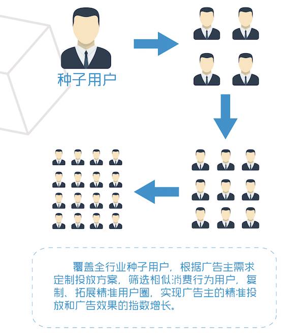 已拥有一部分老客户,还想精准扩量获新,但不知道如何化数据价值?“基因识别专家”(Lookalike)的相似人群拓展服务是“寻Ta”的另一个神秘身份。Lookalike定向可将广告主私有人群数据作为种子人群,在匹配出使用百度产品的人群后,根据种子用户的标签与百度用户标签进行精准匹配,依托百度用户画像技术,提取种子人群共性特征。最后,根据这些特征,从全量活跃用户中筛选出一批与种子人群最相似的用户,最终获取裂变增长的拓展人群。 基于用户上传的种子人群,Lookalike定向支持最低100万,最高2000万的相似人群扩展。种下一棵树,收获一片林,减少广告成本的同时,还能对采集的用户数据进行分析及价值挖掘。说到底,许多企业心中最高效的营销方式正是这两种身份的结合。 二、四大亮点 有求必应——多样化种子来源 “寻Ta”的种子用户上传支持设备号等多种格式,设备号来源可以多元化,满足不同广告主的诉求。广告主可以轻松自助操作,根据广告主提供的设备号等多种维度数据,系统可一键精准锁定目标人群,让营销变得可控又简单。