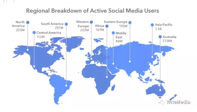 全球社交媒体活跃用户中亚太地区仍占主要领导地位,南美、北美、西欧、正在崛起。 从以上数据,我们不难发现社交媒体营销仍旧是未来营销策略中的一个重要因素,作为产品出海的开发商或者广告主来说,了解社交营销的行业洞察以及社交媒体营销面临的问题并不难,难的是如何在目的地市场迅速通过社交媒体营销占领市场,促进品牌的推广与传播。 面对社交媒体营销的一系列挑战以及当地市场的不确定因素等, 作为出海经验不足的广告主来说,选择一家海外投放经验丰富,专注于社交媒体营销的移动推广平台尤其重要( 例如WiteMedia)。因为我们不仅能为您带来全球范围内优质流量,更能为您创造全球高效创收,成功实现品牌战略布局与推广。