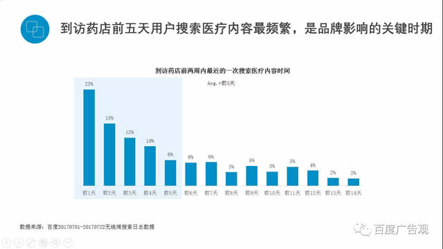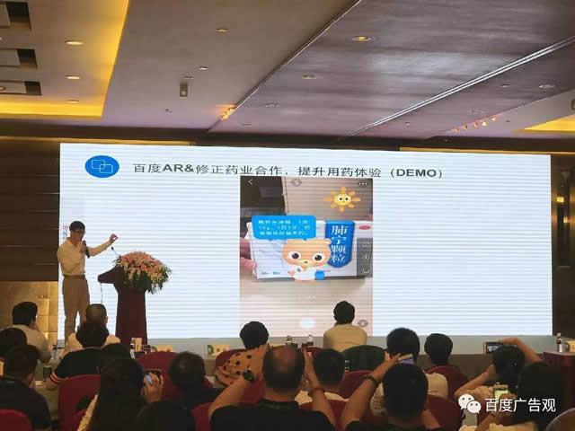 在医药营销方面,我们做了一个试点,百度有一个AI设备叫做百晓。对一万名患者做了采样收集,通过百晓我们知道有52%的人在进入药店之前2个星期,在网上搜索过医疗、疾病相关的信息,这部分人群百度是有机会识别出来的,另外也发现,该部分人群到店后停留的时间也更长。
