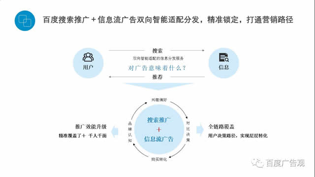 当用户发起需求时,搜索的时候是用户主动找品牌,推广的时候是品牌把信息、疗效、把品牌传递的价值去区网站建设推送给用户,构成了一推一拉的双向覆盖。但前提是对精准人群的需求把控,对商业知识图谱的把握,以及有可能向后追溯的用户线下行为。