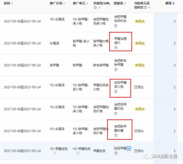 我们在投放账户的市场部宣传推广过程中,因为某些行业自身的原因或者账户结构的设置原因,会发现在每天的账户搜索词报告里,很多潜在客户都是以长尾关键词作为检索词获取信息,比如“甲醛治理多少钱”、“甲醛检测价格”等,对于这类关键词,具有明确的搜索意图。那这个时候,你就需要做出准确的判断,我们现有的着陆页是否能满足这些检索词的需求,是否可以引导转化?