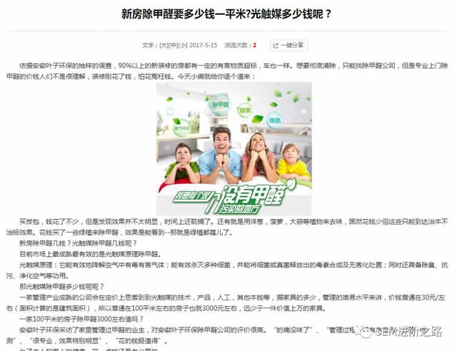 在网站中,添加一个如下的文章作为着陆页,在内容中,对目前一些常用的除甲醛方法比如“绿植、炭包”做个简单介绍,同时指出这些方法效果不好且浪费时间,想彻底解决,需要寻找专业的除甲醛公司作为访客心理转化的引导。紧接着说出他所关心的问题——价格!同时解释了为什么需要这么多钱,把费用与具体的实物相对比,让他知道,为了健康其实价格不贵。这样可以更好的进一步引导他给我们来电,最后对企业产品和服务做一次阐述,加上联系方式,从而达到转化长尾关键词的目的!