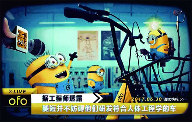 其次,ofo小黄车和小黄人都具备轻松快乐的品牌基因,小黄人是可爱、呆萌贱的形象,小黄车是时尚轻松的出行工具,这些都完全符合这个时代年轻人们的喜好,二者传递的“轻松快乐“的品牌理念也一致。 第三,从双方的品牌实力上看,二者也不相上下。ofo小黄车成立两年时间以来,秉承“让世界没有陌生的角落”的发展理念,正在加速全球化的发展布局,计划在2017年内进入全球20个国家,成为全球共享单车品牌。而来自环球影业的小黄人,“戏份”正越来越足,单独为小黄人制作的电影《小黄人大眼萌》票房还反超《神偷奶爸》。小黄人的形象已经升华为一个文化符号,源源不断地生产内容。