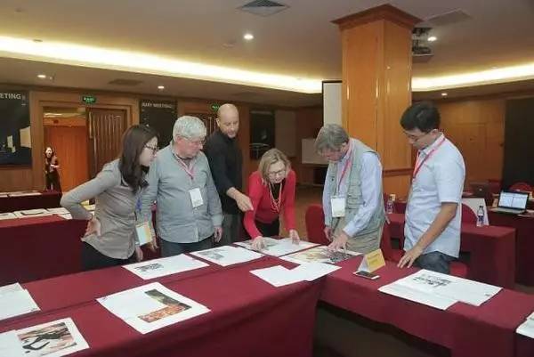 数百张来自世界各地的插画作品,整齐地摆在几十张铺了红色绒布的桌子上。其中,有使用拼贴手法的图书封面,有笔法写意的社论插画,有色彩生动的儿童绘本。在“科学插画类”作品中,插画师们用数字多媒体技术阐释科普信息。在“主题插画类”作品中,每个插画师都努力绘制他们眼中的他国文化,东西方背景的文化故事互相交融,别有一番风趣。 这里是北京,第二届“全球插画奖”终评会现场。