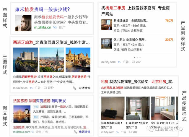 (有图广告的CTR比无图广告高20%以上) 那么问题来了: 作为广告主的我,想快速提升搜索广告的点击率,怎么将广告也变成带图的呢? 首选图片凤巢。 图片凤巢是百度搜索推广客户中使用率最高的一个带有配图创意的广告产品,能够帮助您快速提升凤巢广告的图片覆盖度,从而达到高效提升广告CTR、提高获客能力的效果,可谓立竿见影。 图片凤巢产品样式大全: 1、无线端样式