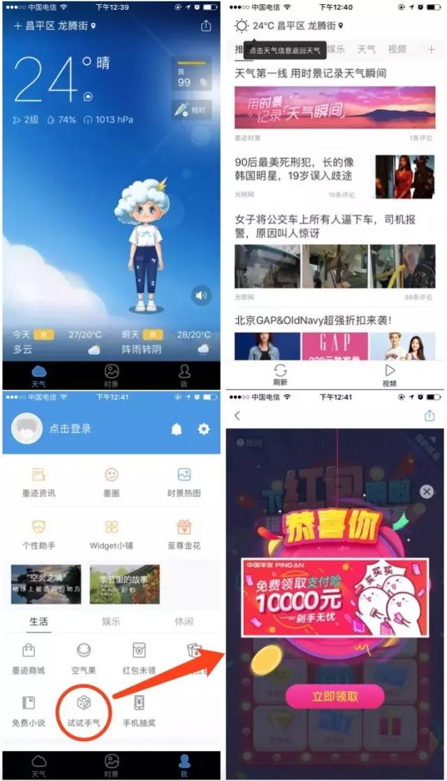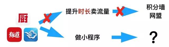 这也是工具类App的普遍玩法,用内容提升停留时长,靠买广告为生。量大的,自己卖,量小的,接到积分墙、网盟里。 小程序一来,墨迹天气很尴尬。他左思右想,还是出了自己的小程序。「我不出,其他天气App也会出的!」 墨迹天气再次变的清爽简洁,却也失掉了广告的收入。而依靠墨迹等工具类App提供流量的积分墙生意,也到了油尽灯枯的时候。