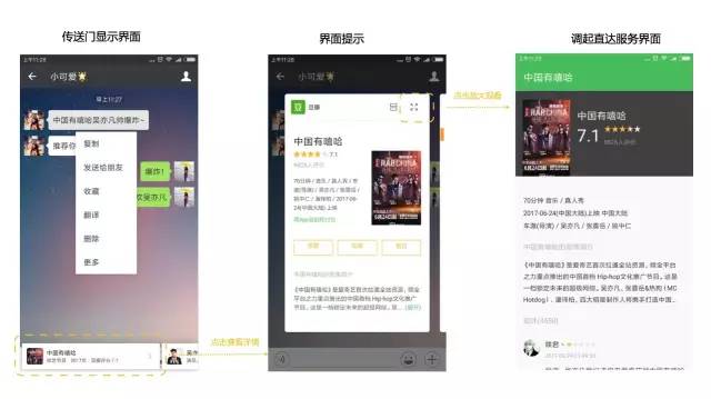 小米直达程序——传送门,长按聊天里的关键字,就能唤起对应小程序。华为的做法也与此类似。