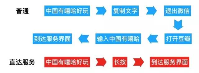 这让微信很不开心,出来怼了华为。我自己都没舍得动「好友聊天」这块肥肉,你动? 但「传送门」这种做法即不影响用户体验,也不涉及用户隐私,毕竟是用户主动长按呼出的。所以微信的辩解,有点无力。 不开心的真正原因,无非是利益。厂商动了微信自己都舍不得动的蛋糕。 这可能是厂商逆袭的开始。过去,在微信里,微信自己是老大,想屏蔽谁,就屏蔽谁,逼着淘宝搞了个吱口令。现在,厂商说向谁跳转,就向谁跳转。 传送门对于App的江湖意味着什么? 1)多花一笔钱 猫眼电影说:「本来让用户下载,我就花钱了。UGC影评我搞得也挺好。本来用户在微信里聊完,就该来我这看影评了。结果你现在电影名长按跳豆瓣影评,我怎么搞?」 传送门意味着服务随时可用,也意味着App下载意义的弱化。App们要多花一笔钱购买长按跳转的服务,但也获得了更多的流量。 2)范围不大 传送门搞竞价的可能性不大,很可能是每个领域和一家App达成深度合作,类似京东&微信。 3)微信反制 微信不会置之不理,很可能通过技术或诉讼发起反制。表面是数据之争,实际是话语权的争夺。 三)运营的活法 有人的地方,才有江湖。江湖都变了,运营的活法也得变。所以最后,我们聊聊直达服务对运营的影响。 看完这部分你才会明白,小米直达服务有多屌。 运营三件事,拉新、促活、防流失。 1)拉新 直达服务无需下载注册,用户体系可以直接引用小米账号,直接跳过下载、打开、注册步骤。