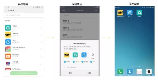 更棒的是,当用户卸载App时,系统会提示用户,可以在桌面保留对应的直达服务入口。