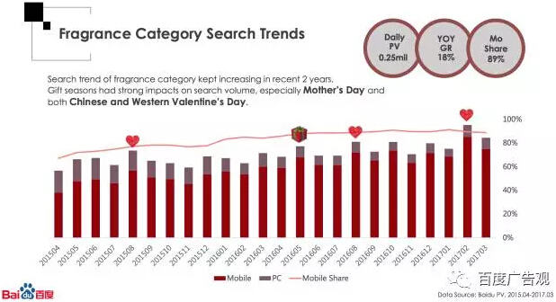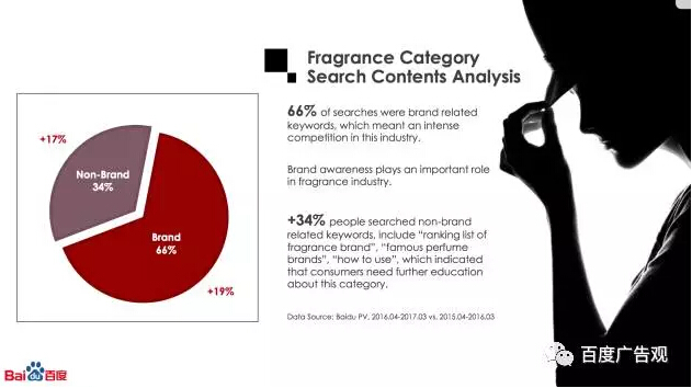 市场分析 既然这是一款高端香水的推广上市,那么我们首先必须了解香水行业是怎样的,百度每日汇聚上亿搜索需求,其中香水行业相关的日均检索量为近30万,在深入挖掘这些大数据之后,我们总结了香水行业消费者的三大特点: