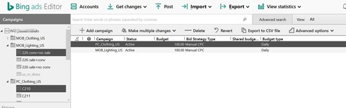 2) 左侧导航栏,可同时选择多个 Campaig布局全网营销n 或者 Ad Group 进行批量编辑