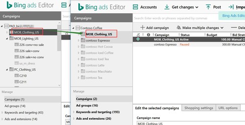 3) 将一个账户的 Campaign 直接拖动到另一个账户的 Campaign 当中