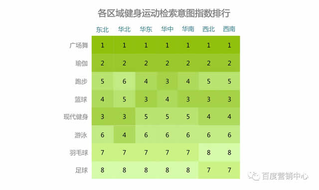 而从区域地理方位看,华中网民相对更热爱跑步,华北、东北更爱现代健身。