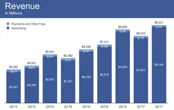 Facebook第二季度净利变化 根据Facebook最新公布的财报数据,广告收入目前仍占Facebook整体营收超过9成,在第二季年增长47%达92亿美元,其中移动广告持续是带动增长的主力,年增幅度为53% ,达到80亿美元,同时也将移动广告的营收占比从去年同期的84%进一步提高到87%。