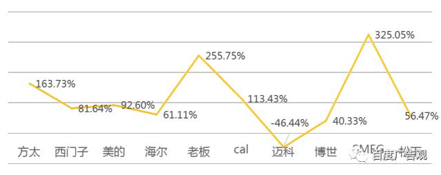 2017年H1洗碗机行业TOP10品牌搜索量同比变化