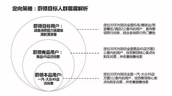 You are where you visit. 制定专属蔚领的三类人群:本品4S店访问人群/竞品4S店访问人群/旅行人群