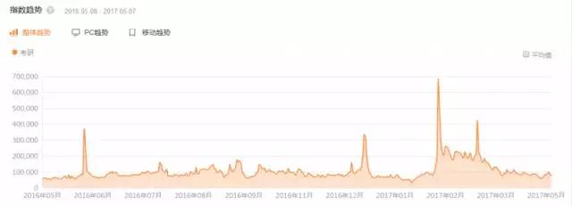 标题点睛样式在无线上方三条广告位均可展现,按关键词点击计费,点击问题标题后进入客户着陆页。该样式无需客户手动填写物料,有效节约人力成本。同时,该样式可以和移动附加样式进一步融合,在吸引网民关注的同时,大幅缩短转化路径。 搜狗指数:基于5亿用户数据,助您智慧决软文推广必备软件策 搜狗指数平台(http://index.sogou.com)于2017年2月底发布,是一款以搜狗海量行为数据为基础的数据分析平台。可以查看全网热门事件、品牌、人物等一系列查询词的热度变化趋势,用来指导推广账户的投放。 搜狗指数可以查看查询词的搜索趋势,支持查看过去7天、30天、一年三种维度的趋势数据,同时支持分pc、移动双平台独立展示。 使用场景举例:考研行业客户,希望通过网民的搜索趋势,提前做好下一年的推广准备。客户可以提交所处行业的热门搜索词,如“考研”,查看这个词一年内的整体趋势。