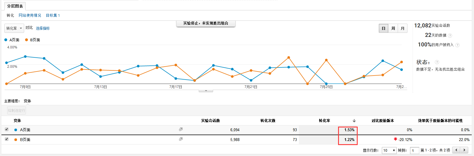 二、通过GA实验功能,对页面进行A/B测试 在实际工作中,单一渠道的转化率偏低,是经常发生的事情,但如果只要转化率低就更换页面观察效果,其实是不够科学的办法,更加常用的方案,是把新策划的页面和旧版页面,以50%分流的方式,对页面进行A/B测试,在连续投放一周以后,就能明天通过数据了解具体哪版着陆页对应该渠道的转化率更高。利用GA实验功能,便能很好的实现这个目的。