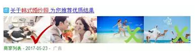 案例二 搜索关键词“韩式婚纱照”,网民希望看见小清新风格的婚纱照片,如下图中的第房地产营销策划1个图片。第3、4个图片显然和“海岛婚纱照”更为相关,建议放在海岛相关推广计划下。