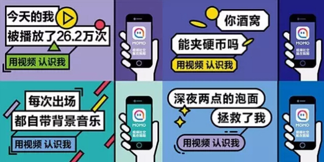 而在直播领域已经取得了不错成绩的陌陌,广告投放方面则显得财大气粗:全国300个城市投放、投放媒介覆盖到映前广告、公交车站牌、地铁、电梯间、网络视频贴片、公交车等渠道,广告形式有“大字报”还有15秒视频。