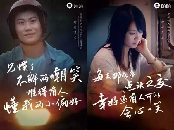 2015年,陌陌携手著名导演贾樟柯,拍摄广告片《陌生并不存在》,以年轻人尤其是在外打拼的年轻人普遍存在的莫名的“孤独感”为切入点,继续深化“同类”“兴趣”“圈群”化社交。