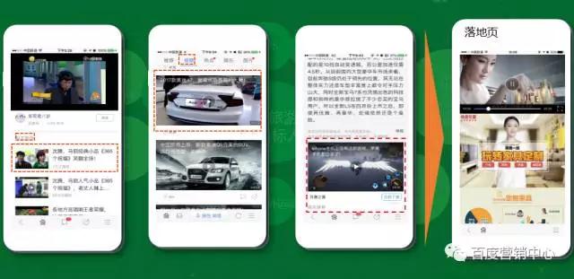 例如:家居定制的广告主投放手百端的视频广告,可以在视频主页、推荐页以及手百的详情页进行视频播报,投放广告,当网民点击进入落地页,在落地页中播放视频的同时,可以进行很点击注册,定制,或者是咨询等操作,着落页与广告的配合,让客户达到很好的转化;