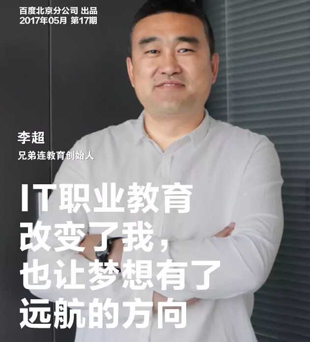 兄弟连,是梦启航的地方 不难想象,眼前这位儒雅侃侃而谈的老总,对过去的经历充满了感激。李超,曾是一位出身职高,19岁便参加工作的铁路工人。正是他骨子里的闯劲和韧劲,让他成为了人们羡慕的成功人士,但李超更喜欢学员们称呼他“超哥”。 1999年,铁路上的工作一成不变,但时代的脚步并没有因为列车的“墨守成规”而停下发展的脚步。“当年的诺基亚手机每年的更新换代我都会留意,从黑白屏到能上网……时代发展真的很快,网络带给人们的变化也很大……”敏锐的思维让李超没有放过任何一个从新改变命运的机会,2002年李超报名大连交大计算机成教专业,至此李超走上了与互联网密不可分的传奇人生。 经过培训,李超对互联网有了新的认识,并相信互联网是未来社会发展的重要引擎。2004年,非典刚刚过去,李超只身来到北京。与万千北漂一样,背井离乡只有医院广告投放公司努力拼搏。 一千块,是李超进京闯荡的所有盘缠。在汗水的浸透中,李超很快成为了一所港资培训机构的IT老师。时隔两年,李超已经跃升为这家教育机构的教学总监。 李超知道,求学的孩子最是可爱,他们渴望成才,渴望通过努力改变自己的命运,甚至改善家庭的境况。也只有经历过人生低谷的李超能深刻的体会学员们的疾苦。他毅然放弃了那份稳定体面、收入颇丰的工作。发誓要为孩子们创办一所严把教育质量,真正传授技能的学校。2006年,兄弟连创立。 兄弟连把精力都放在了服务学员上 “变态严管 破茧成蝶”是写在兄弟连教学区最显耀的标语。李超介绍道,为了能给学院营造一个积极向上努力拼搏的学习环境,学校通过教学+教研+考核的联动,切实保证每一位学员都能掌握知识要点。如果在抽查中,合格率低于规定值,学校将普查这个班级。之所以严格要求,不仅是强化教学质量,更是为了学员今后的发展,李超在访问中说到,我们的学员基本没有在夜晚12点以前离开教学区。正是严把教学质量,兄弟连的口碑不仅在学员中广受信赖,更在用人单位频获好评。 经过近四年的摸索,兄弟连在教学上积累了良好的口碑,学员的就业薪资也屡创新高,2010年底兄弟连在国内首推“零费用学习毕业后还款”模式,为那些不够富裕家庭的孩子带来了希望。 李超热爱教育事业、热爱讲台,更把学员的信赖当作无上至宝珍藏在心底。为了鼓励学员攻克难题,李超经常在课余时间跟学员分享他的经历,以此来鼓励学员无惧艰险勇往直前。也正是这样的举动,学员更加喜欢这位平易近人的大人物。 打造品牌,兄弟连靠口碑 随着就业市场对IT从业人员需求的增加,IT培训机构数量也逐年增多。市场竞争带给兄弟连更多的是破茧成蝶的动力。工科思维的超哥对市场营销并不十分在行,但把兄弟连打造为IT培训行业的“网红“,他却很成功。 早在学校创办之初, “无兄弟 不编程“的slogan就深入人心。2009年自编教材《细说PHP》一炮而红,在学员中影响广泛。到2011年,兄弟连发布的PHP学习视频已经超过500集,累计下载突破1000万次。2012年再版的《细说PHP》已经是第7次印刷,销售量过两万册……文化的输出,让兄弟连聚集了一批充满兄弟情怀的“原始种子”学员。 百度一直是我们最信赖的合作伙伴之一,李超如是说,由于互联网的发展,兄弟连在百度的检索量日益增加,也因此累积了良好的口碑,学员们也习惯使用百度来了解我们。几年下来,通过百度也让我们对有IT培训需求的学员有了更多的了解,我们还通过百度教育、知识问答、贴吧等平台与学员互动。兄弟连在多年的发展中,已经与百度结下了密不可分的伙伴关系。 未来的兄弟连,胸怀更广 在李超的带领下,兄弟连不断发展壮大。除北京校区外,还在上海、广州、深圳、南京、沈阳危机公关伊芙、郑州、济南、南宁设立学校。如今兄弟连已经是新三板上市公司,未来在资本的运作下,兄弟连还将不断扩大规模,将严把质量的教学模式推广到更广泛的的地区,为更多的学员提供服务,帮助他们实现梦想,也为国家“信息化战略“提供人才储备。 互联网是神奇的,他让小山村孩子有了实现梦想的机会,他让生活在底层的人们通过学习改变了命运,他让越来越多的有志青年赶上了时代。兄弟连,让志同道合的学员有了归属,让小梦想和大梦想都有了远航的方向。