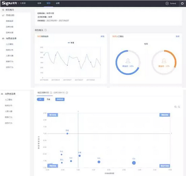 搜狗指数 搜狗智策 搜狗智策平台以平台即服务的理念,分钟级产出数据分析报告,帮您紧紧抓住商机,海量数据与营销理论相结合它能从市场格局研究、品牌认知研究、媒体投放策略、目标人群画像等方面,进行全方位的大数据分析,为企业营销提供强有力的方向指引和数据支持。帮您真正了解用户,了解市场,从而真正实现智慧营销。
