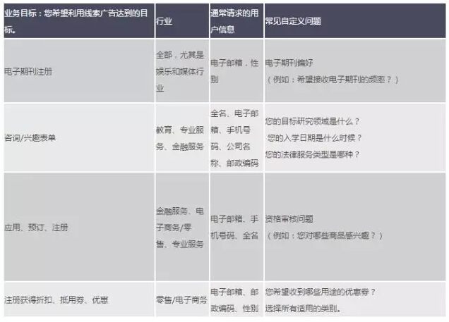 3、我可以在线索广告联系表单中询问哪些问题? 小编为大家举了几个例子: