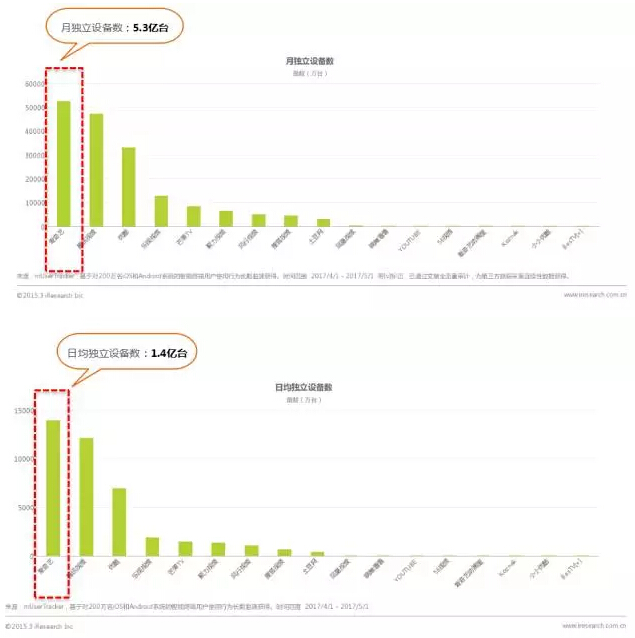 近日,艾瑞公布了4月最新的在线视频行业相关数据,爱奇艺在日均覆盖、月度覆盖、月度时长等多项指标中继续稳居行业第一名。除此之外,《择天记》、《人民的名义》、《外科风云》等多部大剧相继上线,进一步助推了数据的整体增长。 移动端方面,根据最新的2017年4月艾瑞mUserTracker数据显示,爱奇艺APP凭借5.3亿台的月独立设备数排名第一,分列第二名、第三名的分别是腾讯视频和优酷。在三强中,爱奇艺也是一个月独立设备数超过5亿的APP。