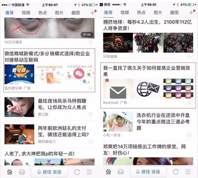 今天例举手机百度信息流广告的多个行业的案例,给大家参考。 大家可以带着学习的眼光看待以下9个客户案例。红色框框圈起来的是广告,未圈起来的是原生资讯(非广告)。 原生资讯的标题撰写手法,和圈起来的信息流广告标题撰写手法感觉不是一路风格。相比广告前/后的资讯比起来,这种信息流广告,显得有点生硬而不是原生。