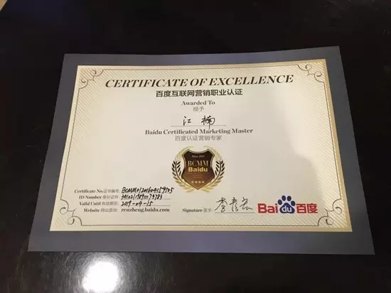 小提示:您应该对本页介绍的“优化师荣获"百度高级认证营销专家”相关内容感兴趣,若您有相关需求欢迎拨打我们的服务热线或留言咨询,我们尽快与您联系沟通优化师荣获"百度高级认证营销专家的相关事宜。