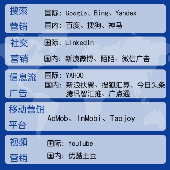 拥有国内外各大营销渠道: