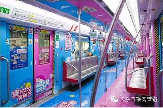 最跨界 - 建行 在杭州,最近新增了一个不得不去的景点,那就是建行七夕专列。列车借助近年来备受年轻人关注的七夕节,将网络流行的“单身汪”、“情侣喵”话题融入其中。大胆运用粉红色、蓝色两个对比色,将车厢“一分为二”——“情侣喵爱TA一生”、“单身汪勇敢追爱”,吸引了大批围观群众。