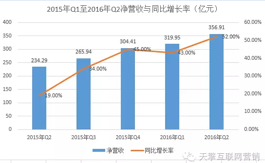 2016年8月17日,腾讯公司公布截至2016年6月30日未经审核的第二季度及中期业绩。财报显示,腾讯2016年第二季度总收入为人民币356.91亿元,比去年同期增长52%。