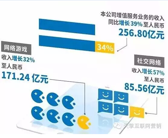 腾讯增值服务业务的收入同比增长39%至2016年第二季度的人民币256.80亿元。