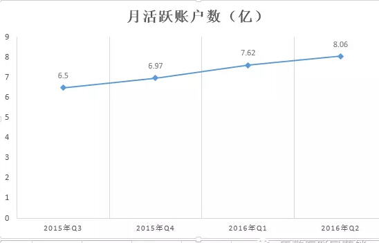腾讯网络广告业务的收入同比增长60%至2016年第二季度的人民币65.32亿元。 效果广告收入增长80%至人民币36.97亿元,主要反映来自微信朋友圈、移动端新闻应用及微信公众账号的效果广告收入的增长。 品牌展示广告收入增长41%至人民币28.35亿元,主要受腾讯新闻及腾讯视频收入的增长所推动。
