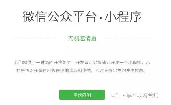 微信公众号“小道消息”发布文章称收到微信官方的微信应用号内测邀请。根据内测邀请函显示,应用号是微信公众平台提供了一种新的开放能力,开发者可以快速开发一个小程序。核心功能是提供一些本地的API供H5上面的js调用,以此提升微信上H5应用的流畅度。